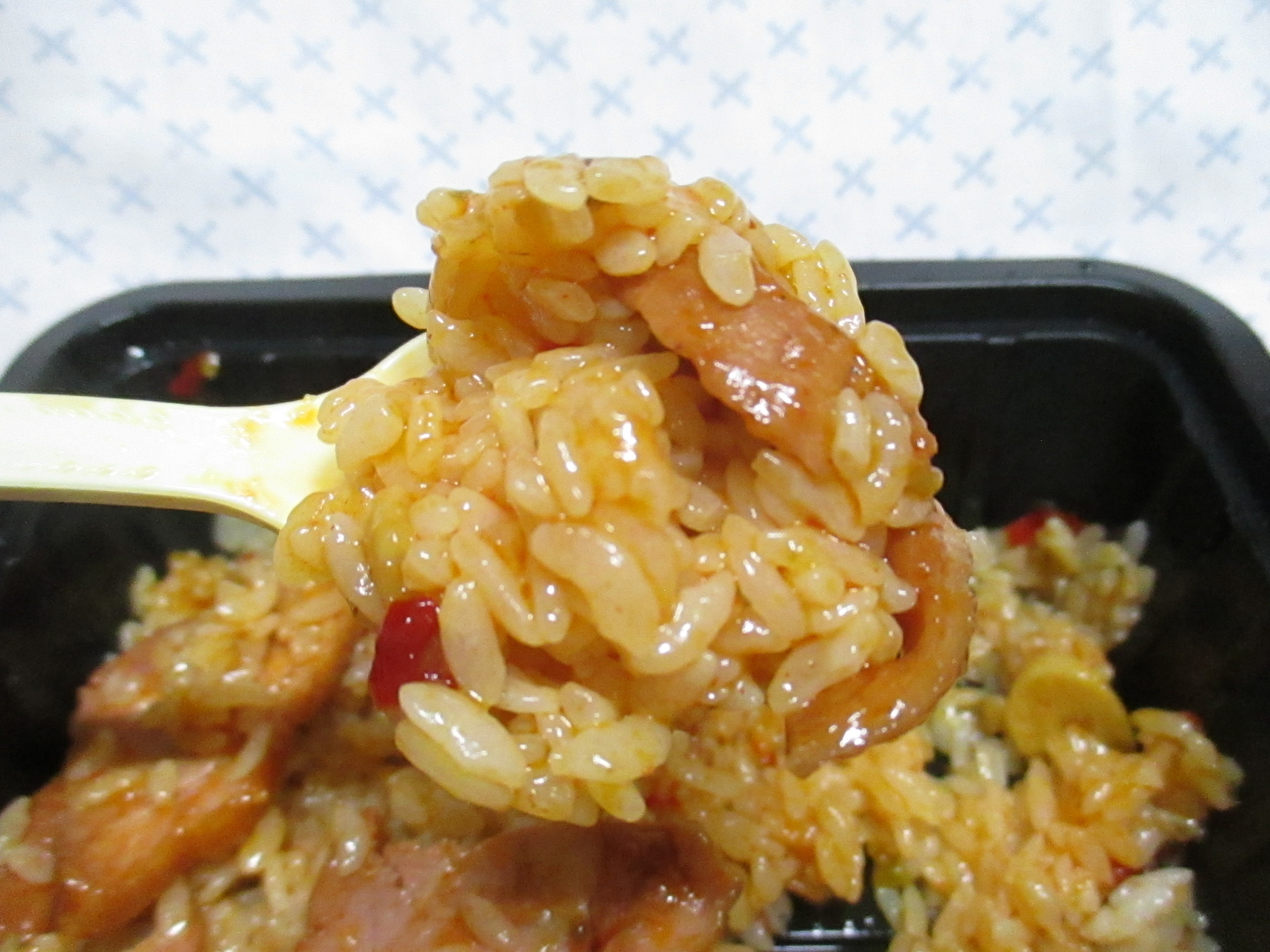 전자레인지 조리 후 덮밥비빔소스만으로 비빈 모습입니다. 실제로는 이보단 좀 더 진한데, 사진은 허옇게 나왔네요. 감안하고 봐주세요.