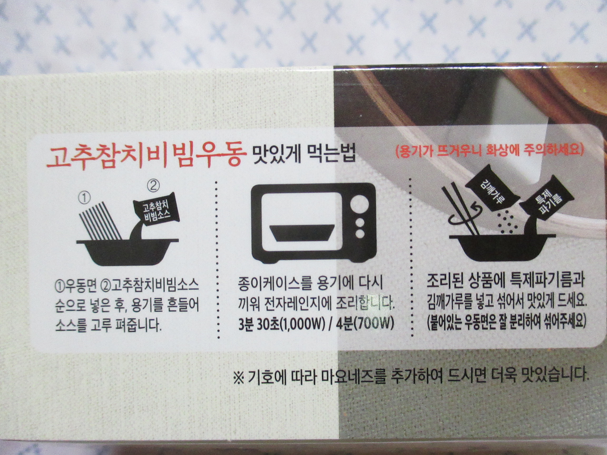 저는 편의점에서 사와서 집 냉장고에 반나절 넣어뒀더니 우동면이 좀 많이 단단해져서 10초 먼저 돌려서 해동을 해준 다음 상태를 확인하고는 마저 3분 50초를 돌려주었어요.