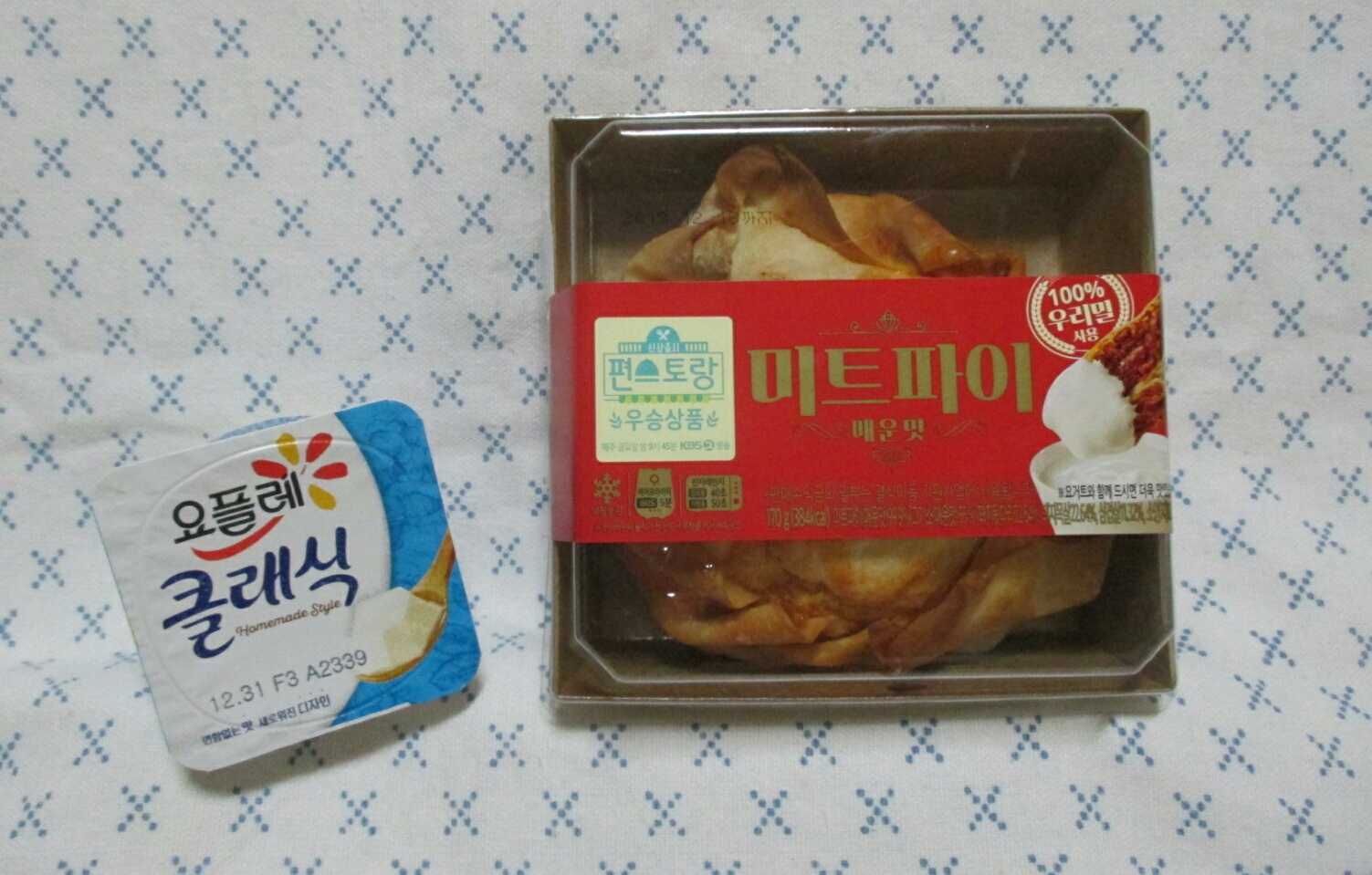 미트파이는 오리지널과 매운맛 두 가지로 출시되었는데, 저는 매운맛 하나만 맛보았어요. 왕 고기만두 느낌으로 파이 안에는 고기로 꽉차 있는데, 동남아 향신료 특유의 매콤함이 느껴졌어요. 그냥 파이만 먹는 것보다 플레인 요거트를 얹어 먹으니 상큼하니 맛있었지만 고기 양이 너무 투머치해서 나중에는 좀 부담스러웠네요.