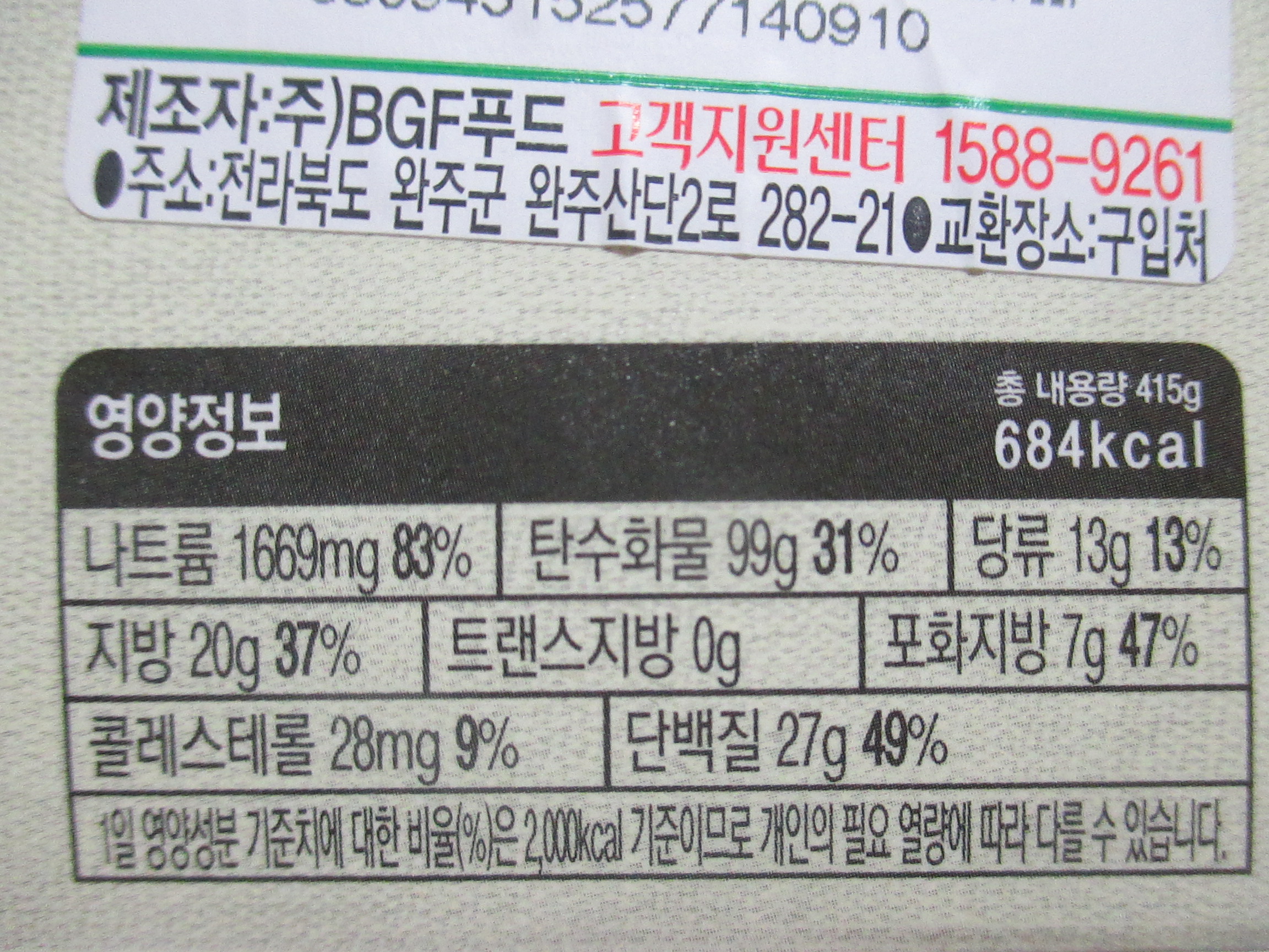 보다 자세한 영양정보와 원재료명은 위 이미지를 참고해주시구요~