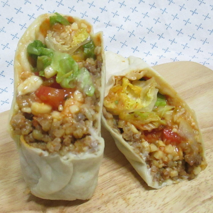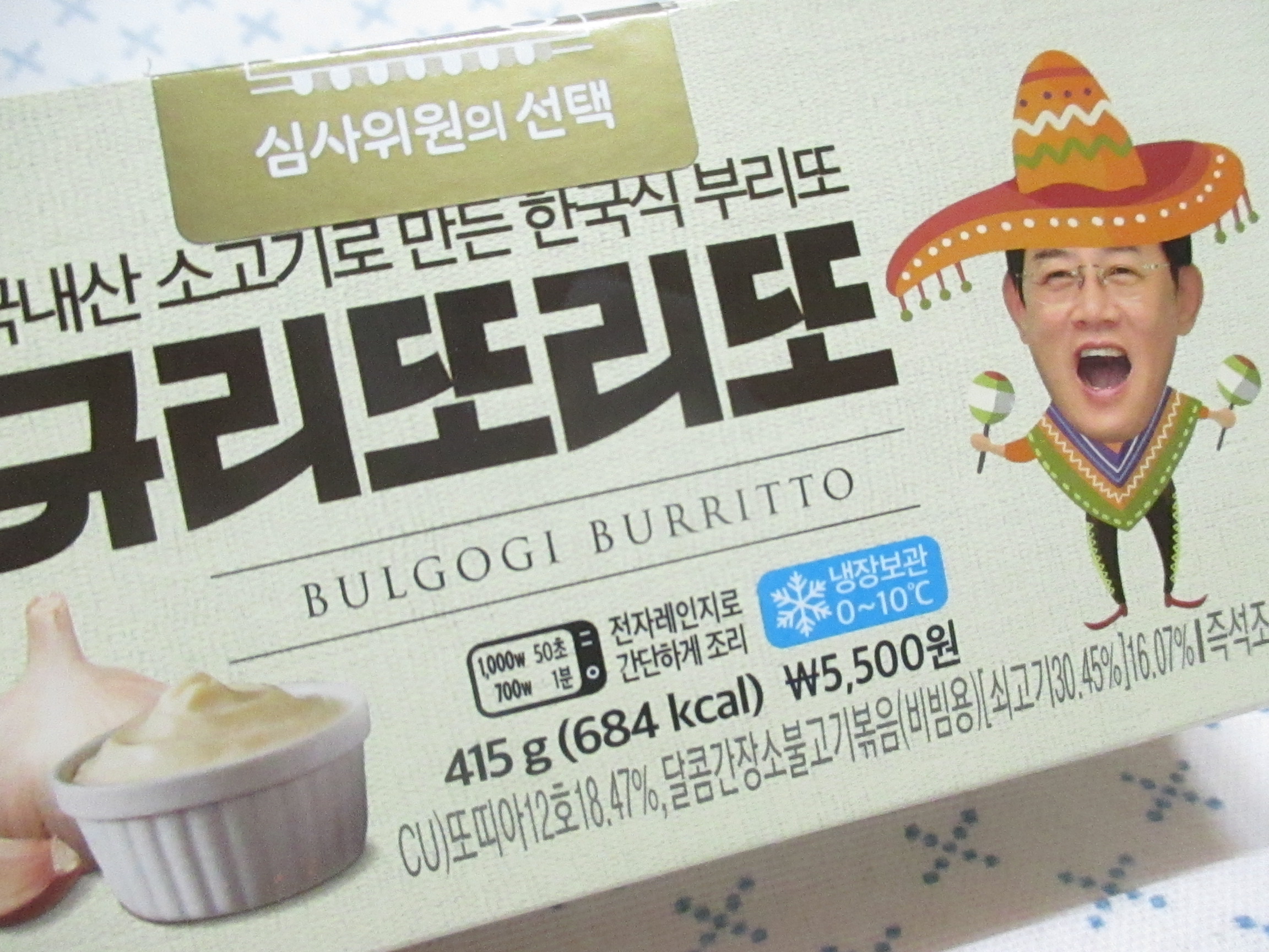'규리또리또'의 총 중량과 열량은 415g에 684kcal로 또띠아 18.47%와 달콤간장소불고기볶음[쇠고기 30.45%] 16.07%가 함유되었어요. 여기에서 소고기는 한우가 아니라 육우를 사용, 육우는 고기를 얻을 목적으로 사육하는 젖을 짜지 않는 수컷 젖소를 말해요.