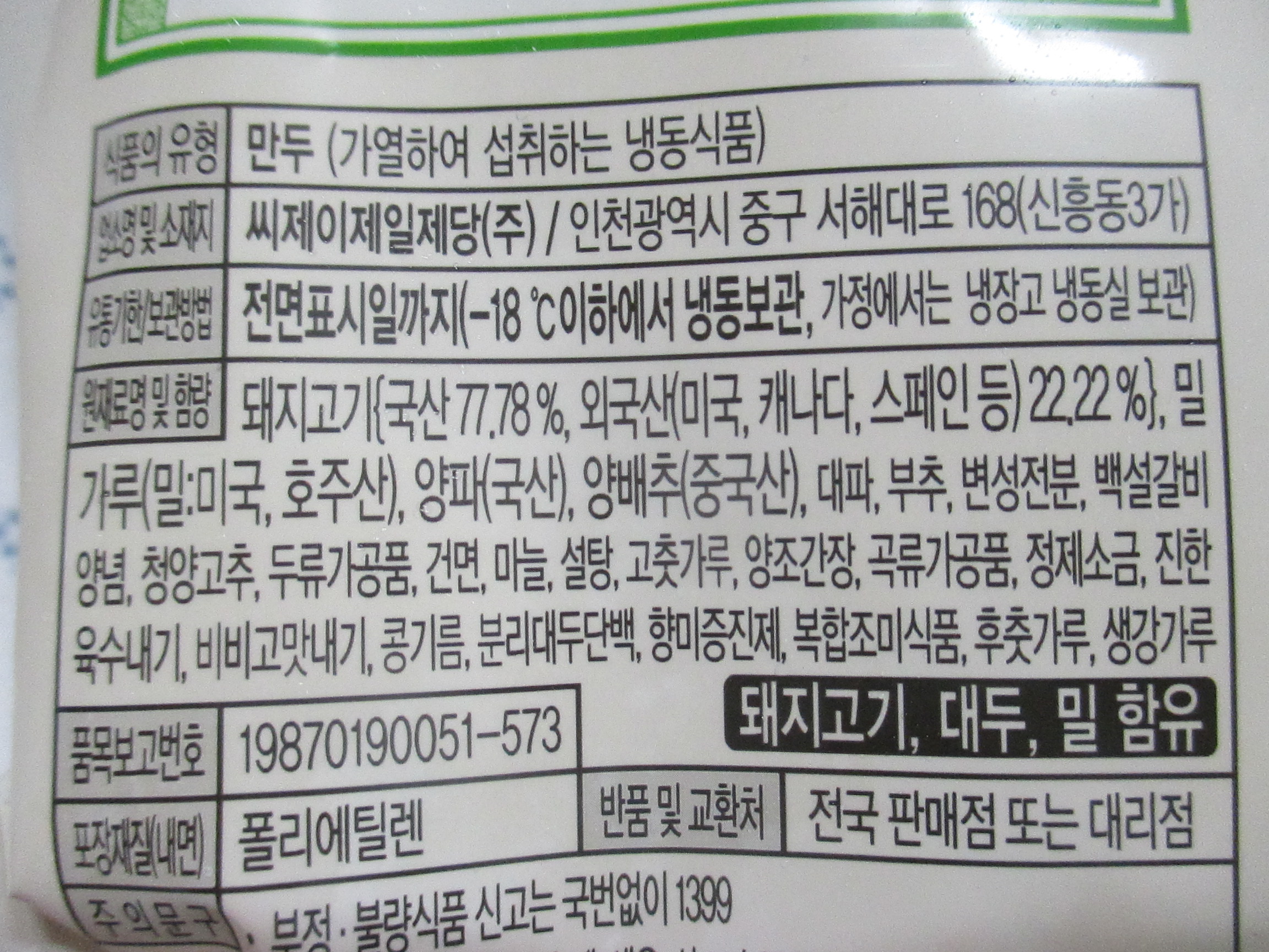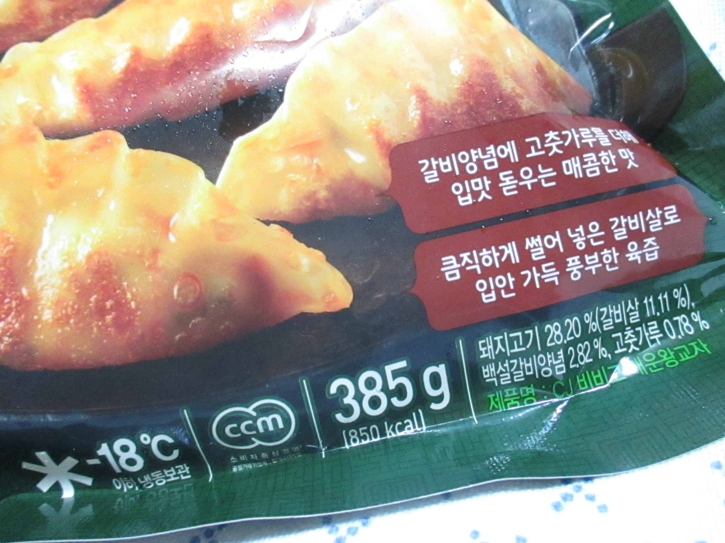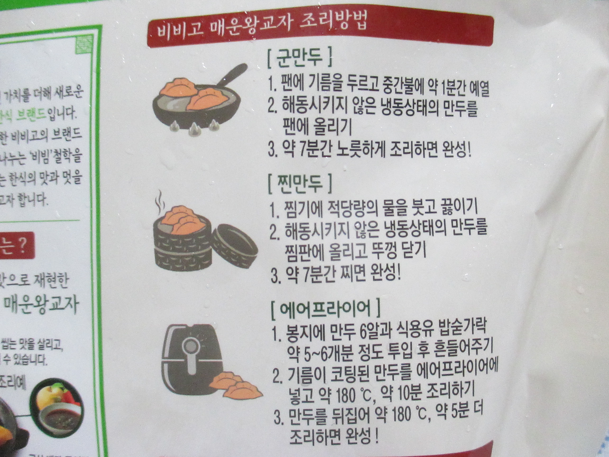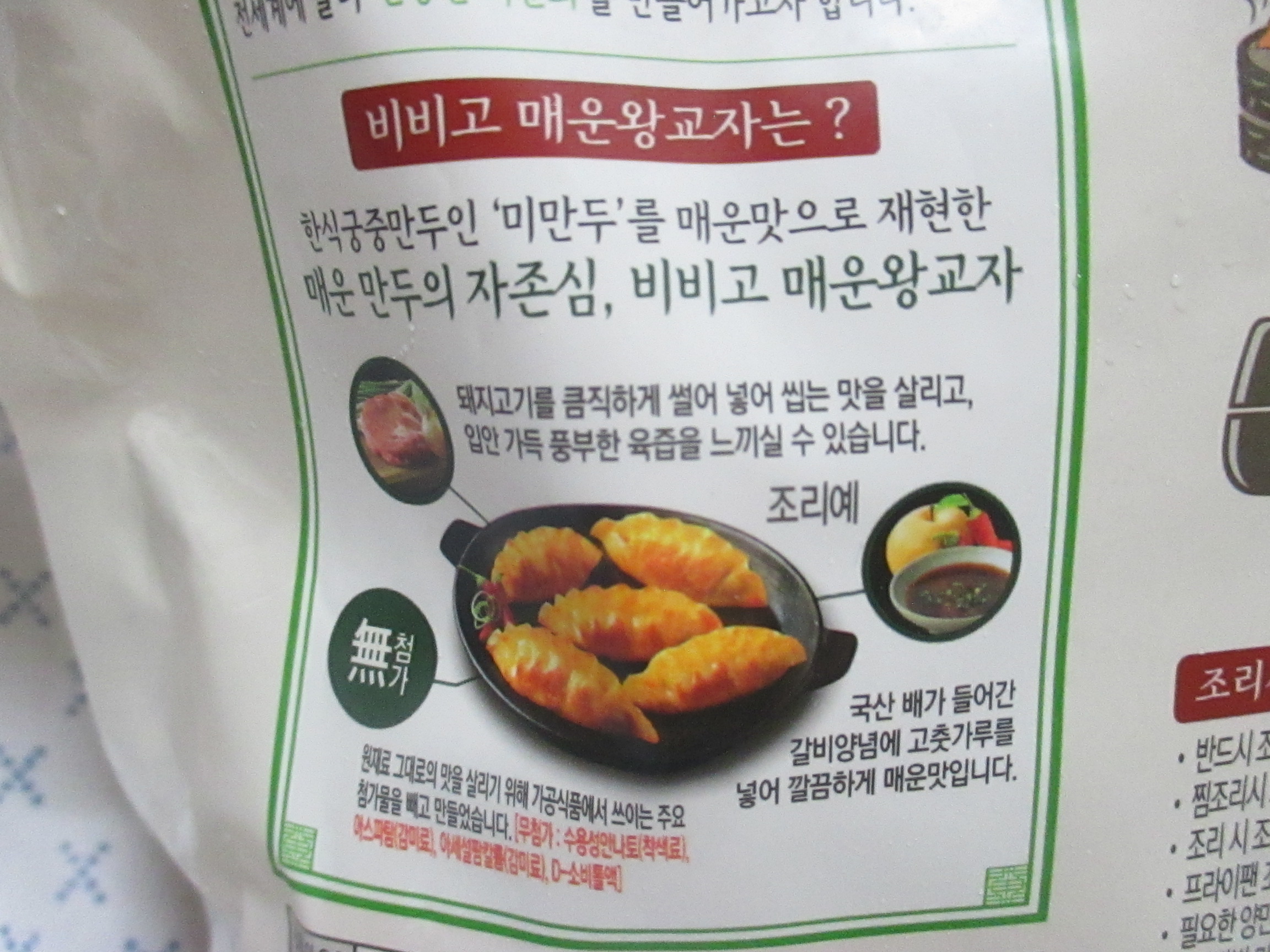 비비고 매운 왕교자는 한식 궁중만두인 미만두를 매운맛으로 재현한 거라고 해요. 돼지고기를 큼직하게 썰어 넣어 씹는 맛을 살렸고, 풍부한 육즙을 느낄 수 있으며, 국산 배가 들어간 갈비양념에 고춧가루를 넣어 깔끔한 맛을 지녔다고 합니다. 사실 이 설명서는 지금 포스팅을 하면서 읽어본 건데, 과연 실제 맛은 어땠을지..... 잠시후에 말씀드릴 게요.^^