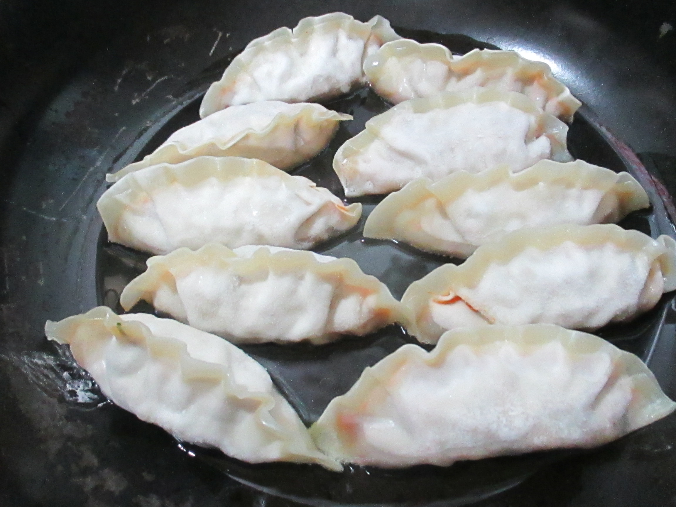 팬에 기름을 두르고 중간불에 약 1분간 예열한 다음 해동시키지 않은 냉동상태의 만두를 넣고 약 7분간 노릇하게 굽는다.