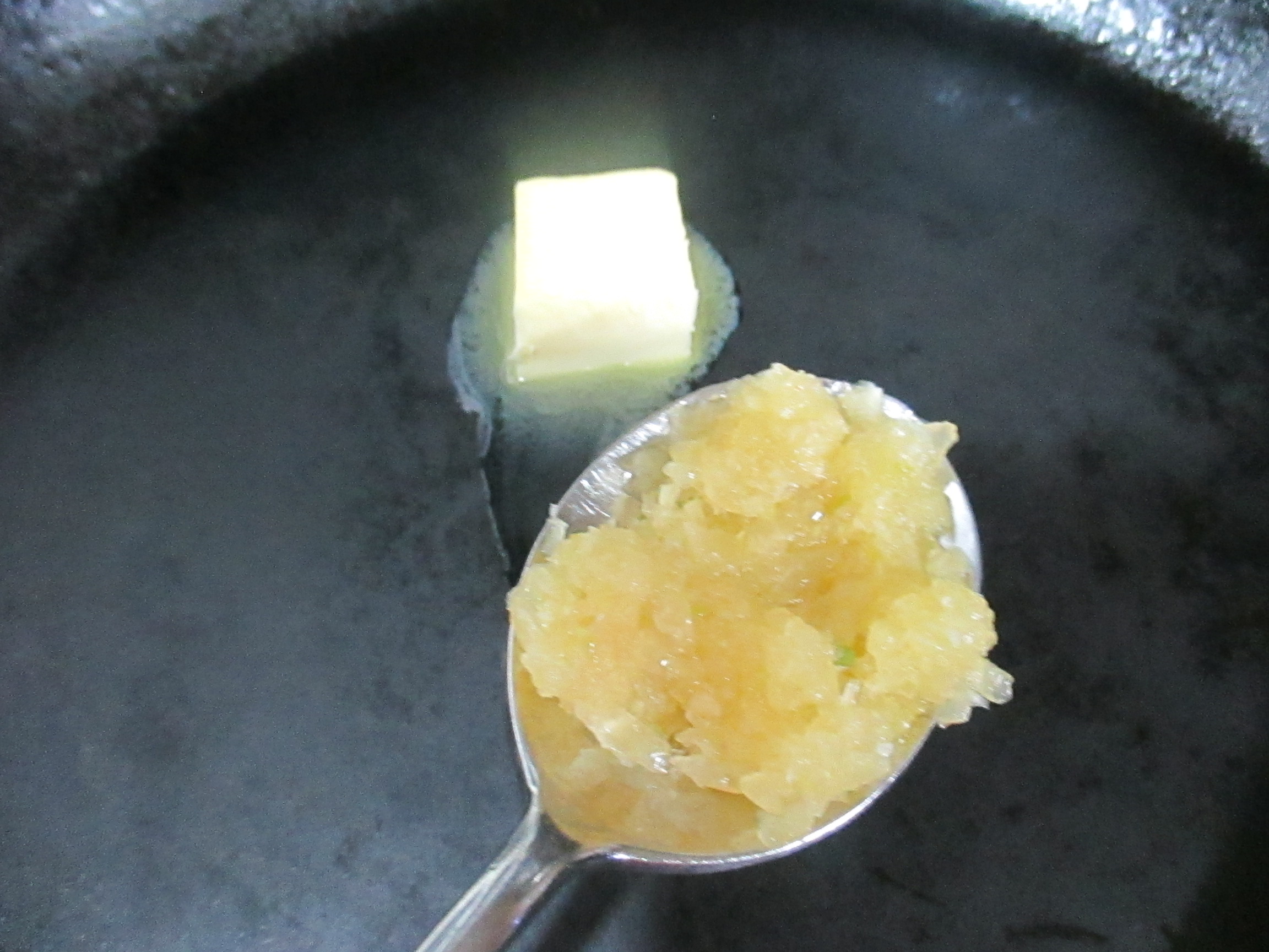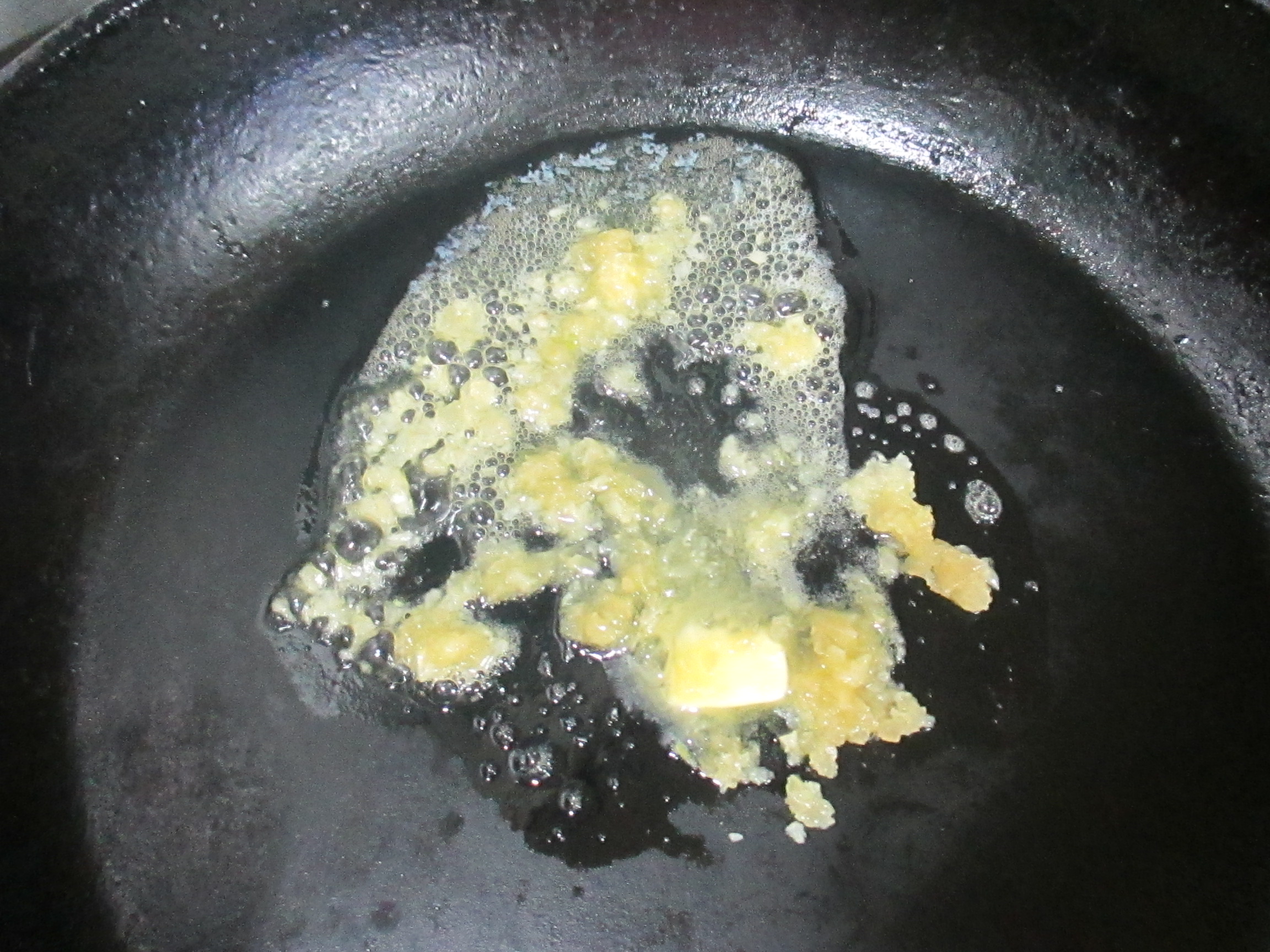 4. 후라이팬에 버터와 함께 마늘을 넣어주세요.