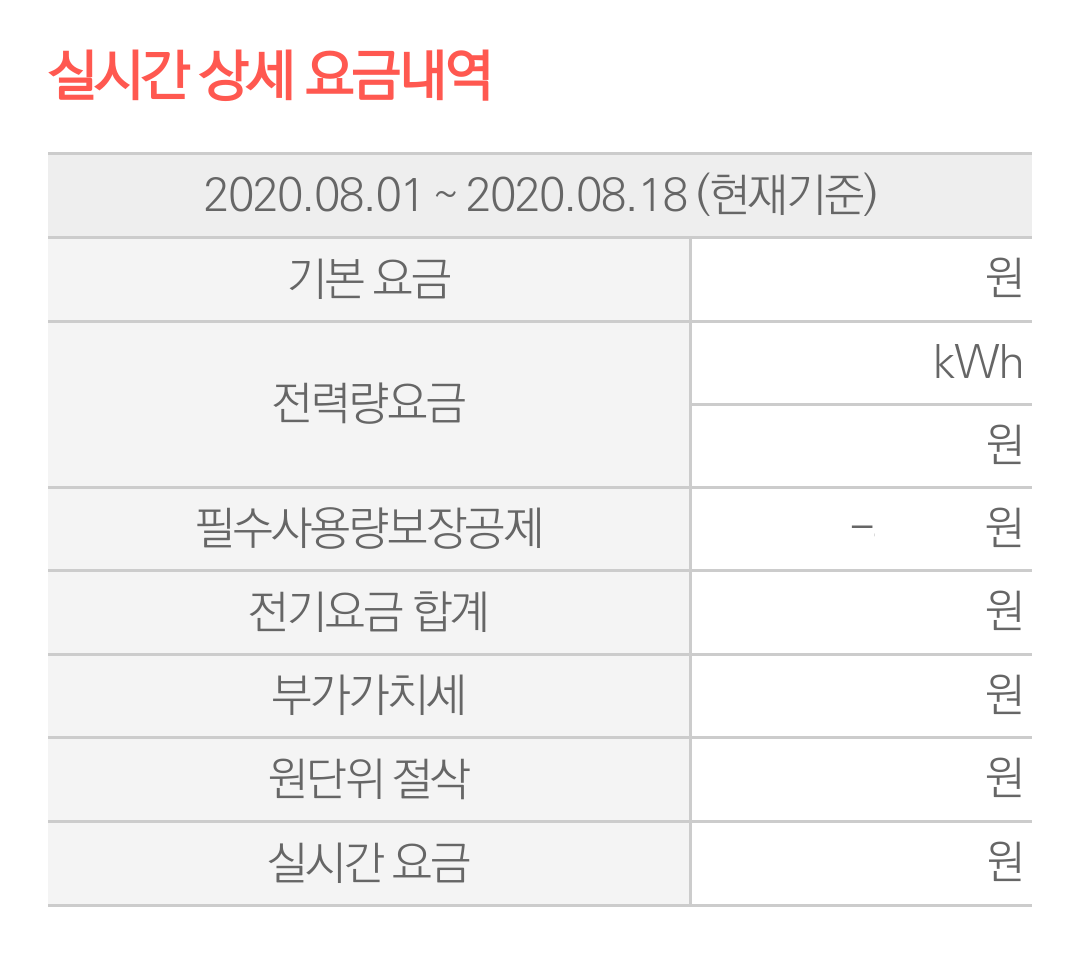누진세가 적용되면 요금 폭탄 맞을 텐데 하고 조마조마하면서도 쭉 에어컨을 켜두고 계실 텐데요, 마음 졸이지 마시고 한전에서 실시간 전기요금을 조회해 보세요. 그럼 현재까지 쓴 이번 달 예상 전기요금을 바로 확인할 수 있어 에어컨을 더 써도 될 지 아님 조금 자제해야 할 지 감이 오실 거예요.