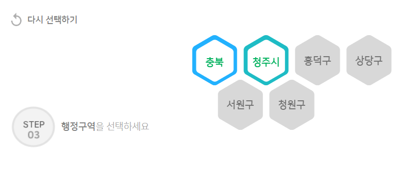 주소지는 '광역시도' - '시군구' - '행정구역' 순으로 선택합니다.