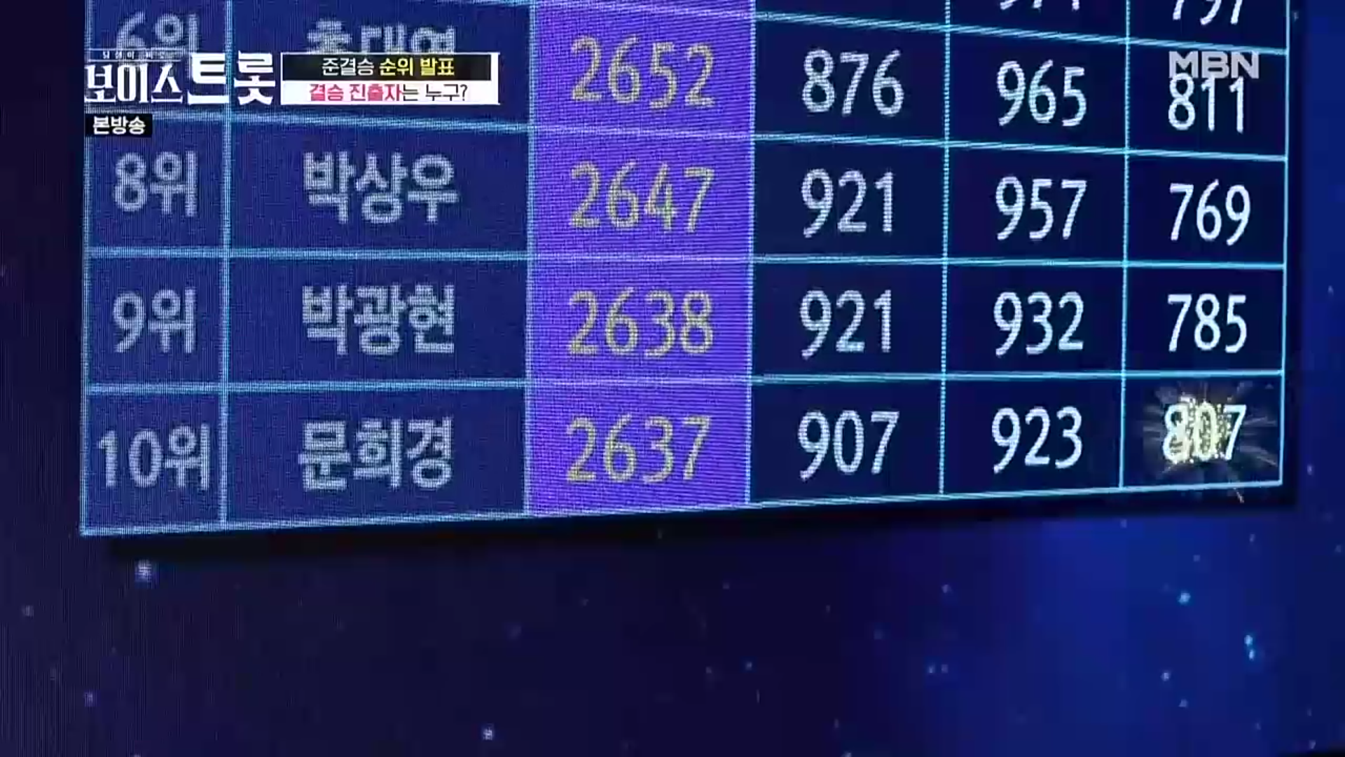 MBN의 보이스트롯 결승진출자가 결정되었습니다.