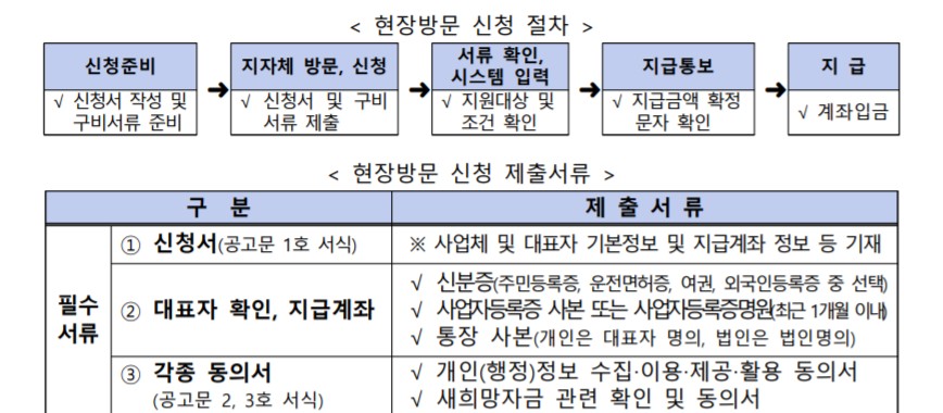 온라인 신청이 어려우시다면 10월 26일(월)부터 11월 6일(금)까지 사업장 소재지(주민번호 소재지 아님 주의)의 관할 지자체 지정장소에 직접 방문하셔서 신청하시면 됩니다. 참고로 운영시간은 아침 9시부터 오후 6시까지입니다.