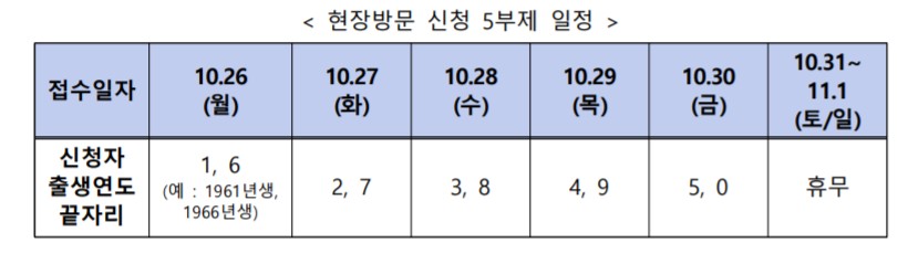 * 방문 신청 기간 첫 주에는 출생년도 끝자리 기준 5부제를 실시합니다.