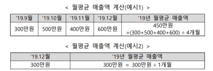 □ 2019년 중에 창업한 경우 지난해 월평균 매출액 계산법