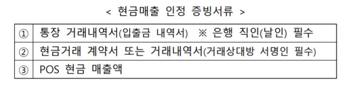 □ 현금 매출감소 인정 증빙 서류