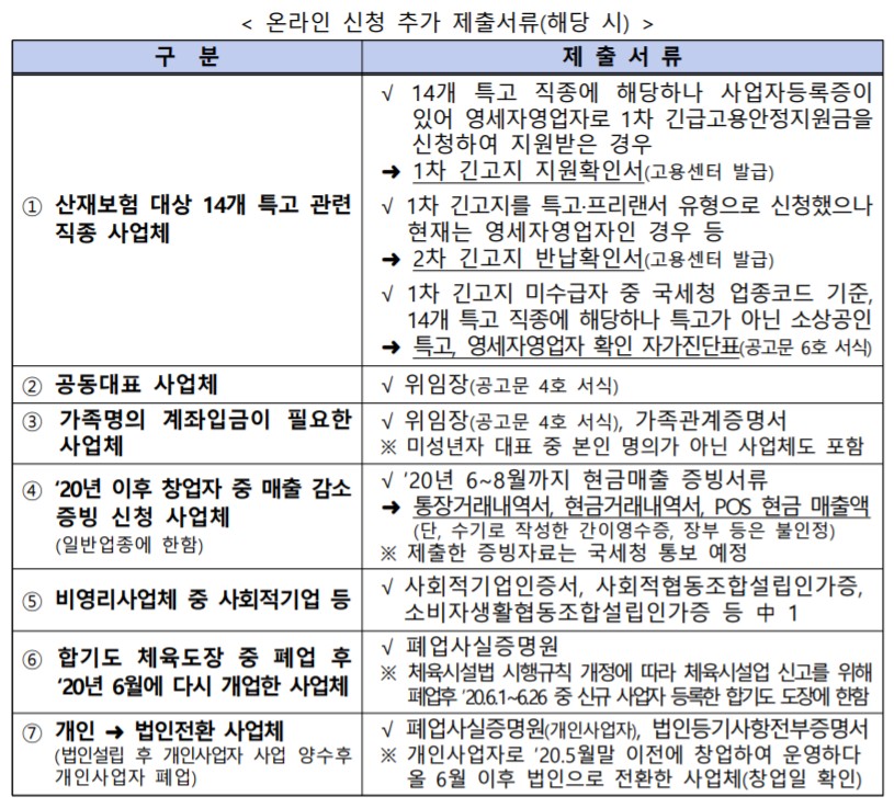 □ 온라인 신청 시 추가 제출 서류