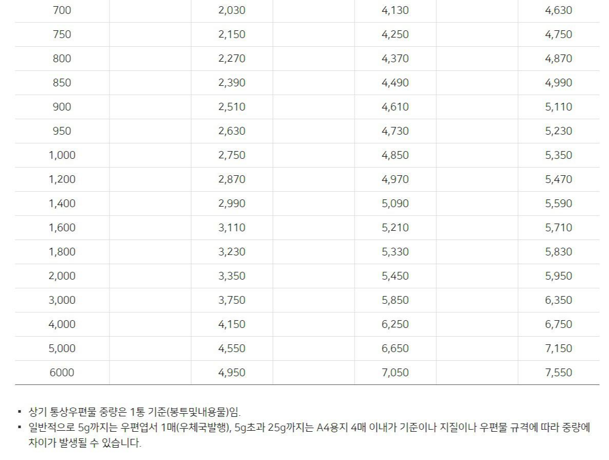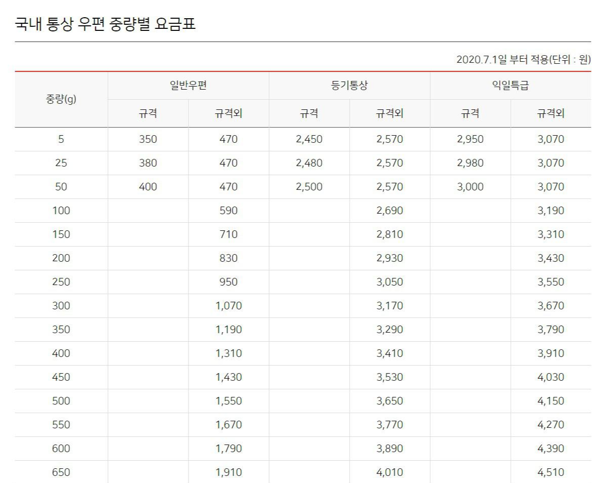 등기는 무게에 따라 가격이 비싸지는데, 규격과 규격 외의 차이로도 금액 차이가 발생합니다. 무게가 많이 나갈수록 그리고 규격보다는 규격외가 가격이 높습니다.