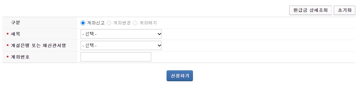 6. 환급금을 지급 받을 은행명과 계좌번호를 입력합니다.