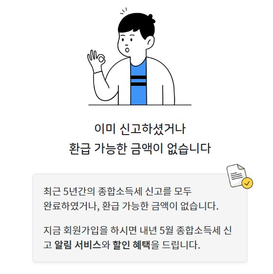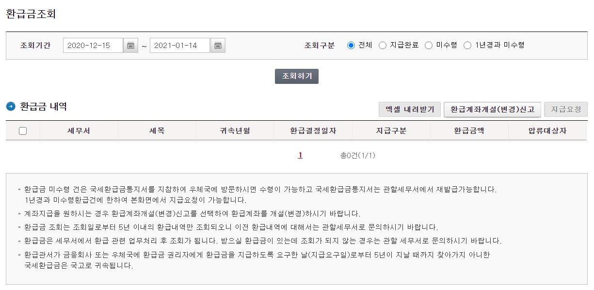 * 본 서비스는 1년이 경과된 미수령 환급 건만 가능하며, 1년 이하일 경우에는 세무서에 문의하세요.