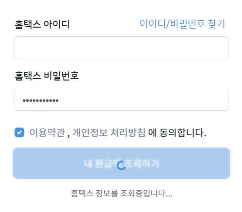 * 국세청 홈택스에서는 환급금 조회 시 로그인이 필요없습니다.
