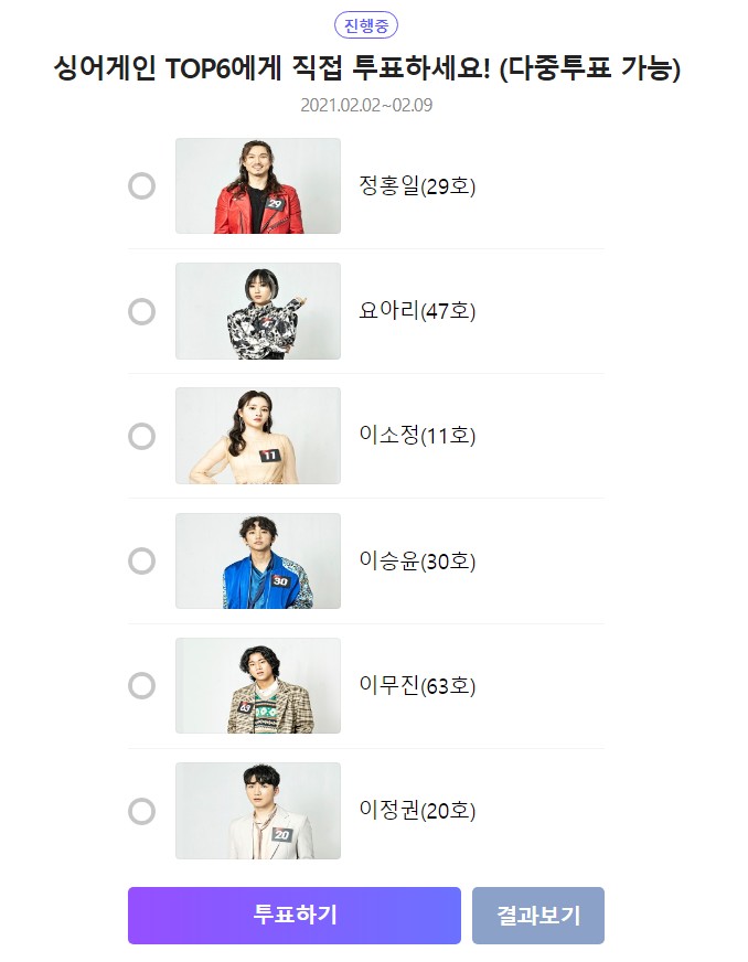 당신이 응원하는 싱어게인 후보는 누구인가요??
