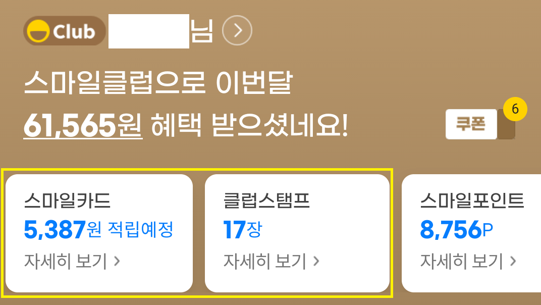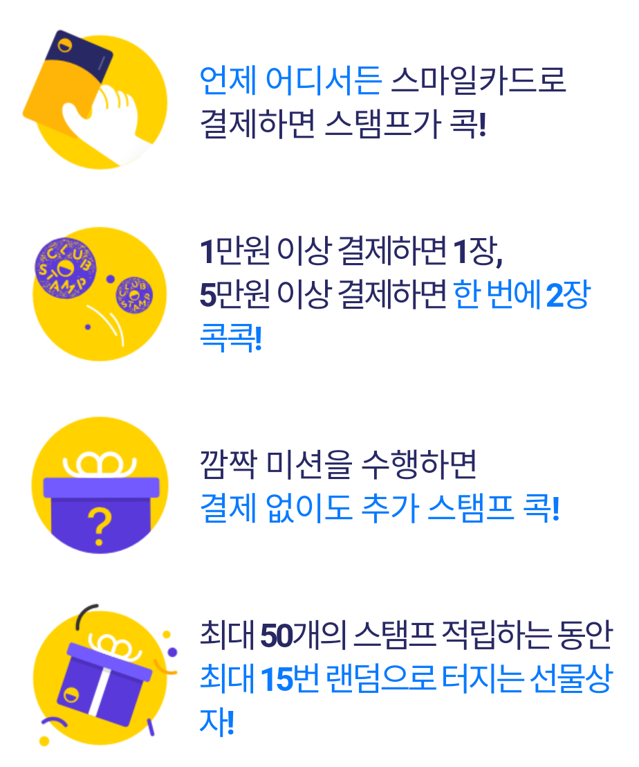 스마일카드 옆에는 있는 클럽스탬프도 스마일카드 혜택 중 하나예요.