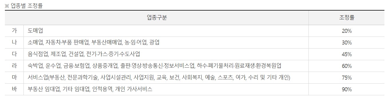 총소득은 근로소득, 종교인소득, 기타소득, 이자/배당/연금소득, 사업소득을 모두 합산하며, 각 소득별로 정해진 소득금액 계산 방법을 따릅니다. 사업소득의 소득금액 계산 방법은 총수입금액X업종별 조정률로 업종별 조정률은 위 표를 참고하세요.