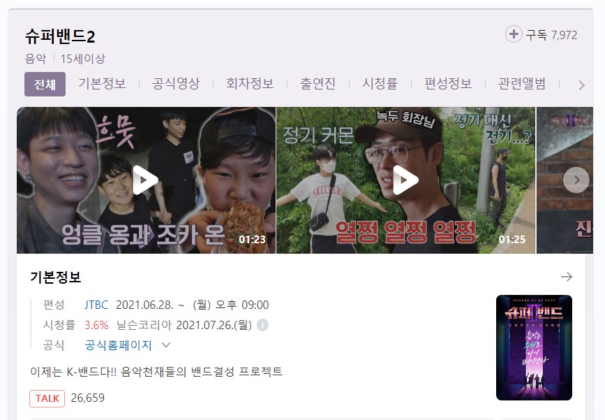아쉬움에 슈퍼밴드2는 안하나 하고 검색을 해봤는데, 며칠 뒤에 슈퍼밴드2가 시작한다는 거 아니겠어요? 무슨 이런 우연이...ㅎㅎㅎ