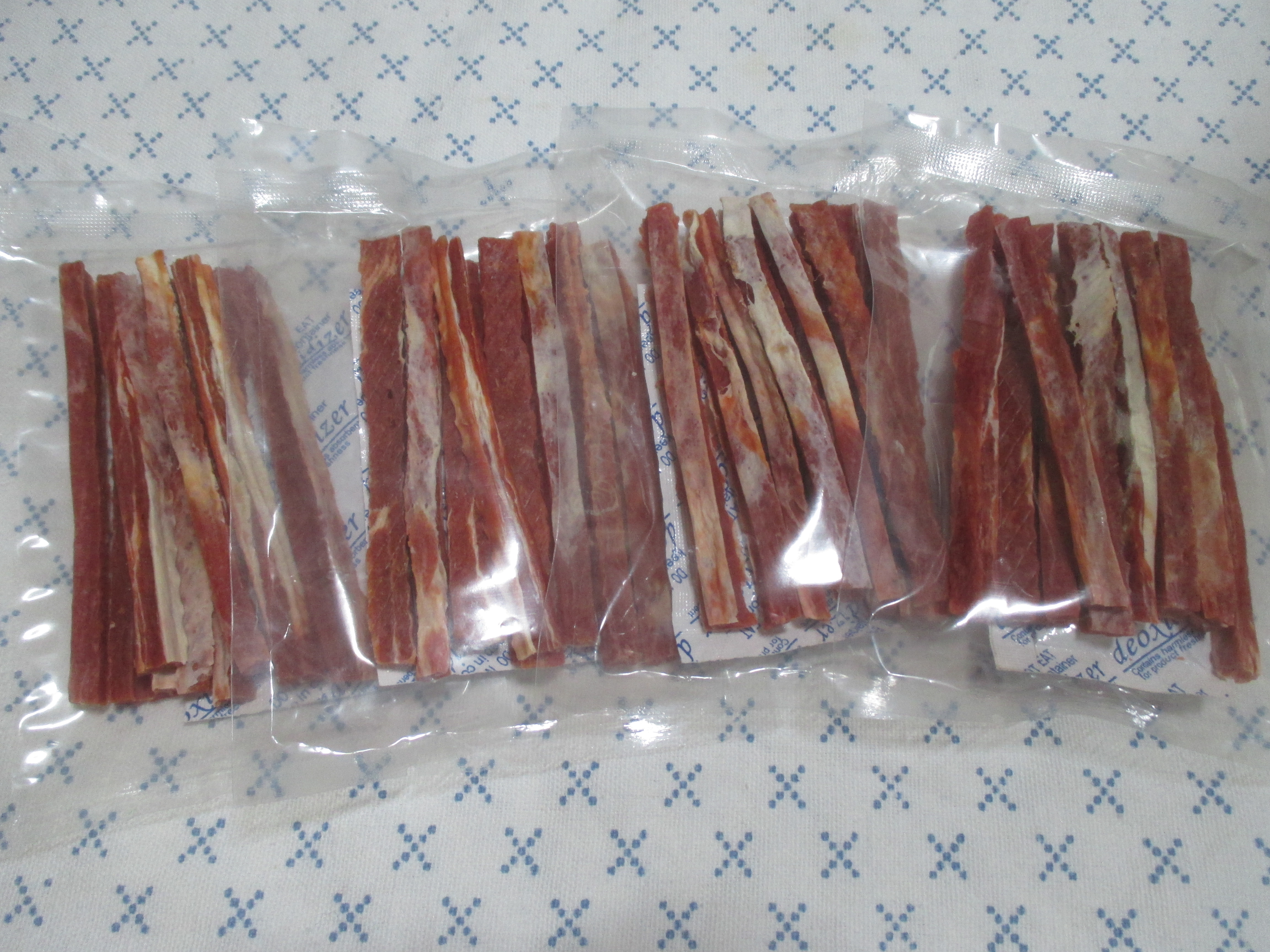 저는 그동안 그렇지 못했는데, 이제부터라도 가끔씩 챙겨주려고 강아지 육포와 치석제거껌(개껌)을 사보았어요. 실패를 염두에 두고 잘 먹는 걸 찾기 위해 차차 다양한 것들을 사보려고 했는데, 그럴 필요없이 이번에 산 것들 다 잘 먹어주네요.