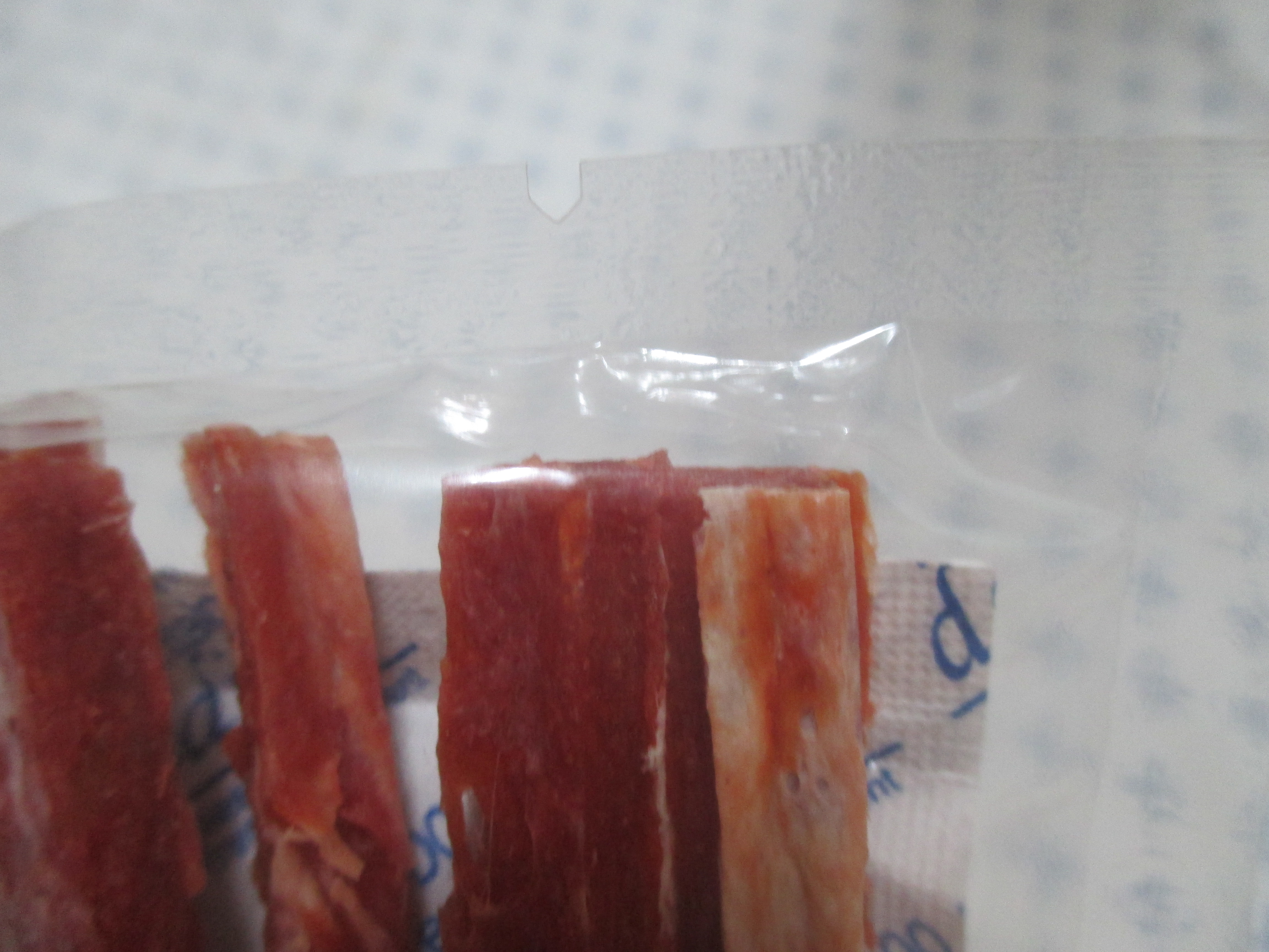 겉 포장을 뜯으면 개별 포장이 되어있는데도 냄새가 많이 나는 편이에요. 뜯으면 더 많이 나고요. 육포 냄새긴한데, 일반 육포 냄새보다 10배는 강한 것 같아요.