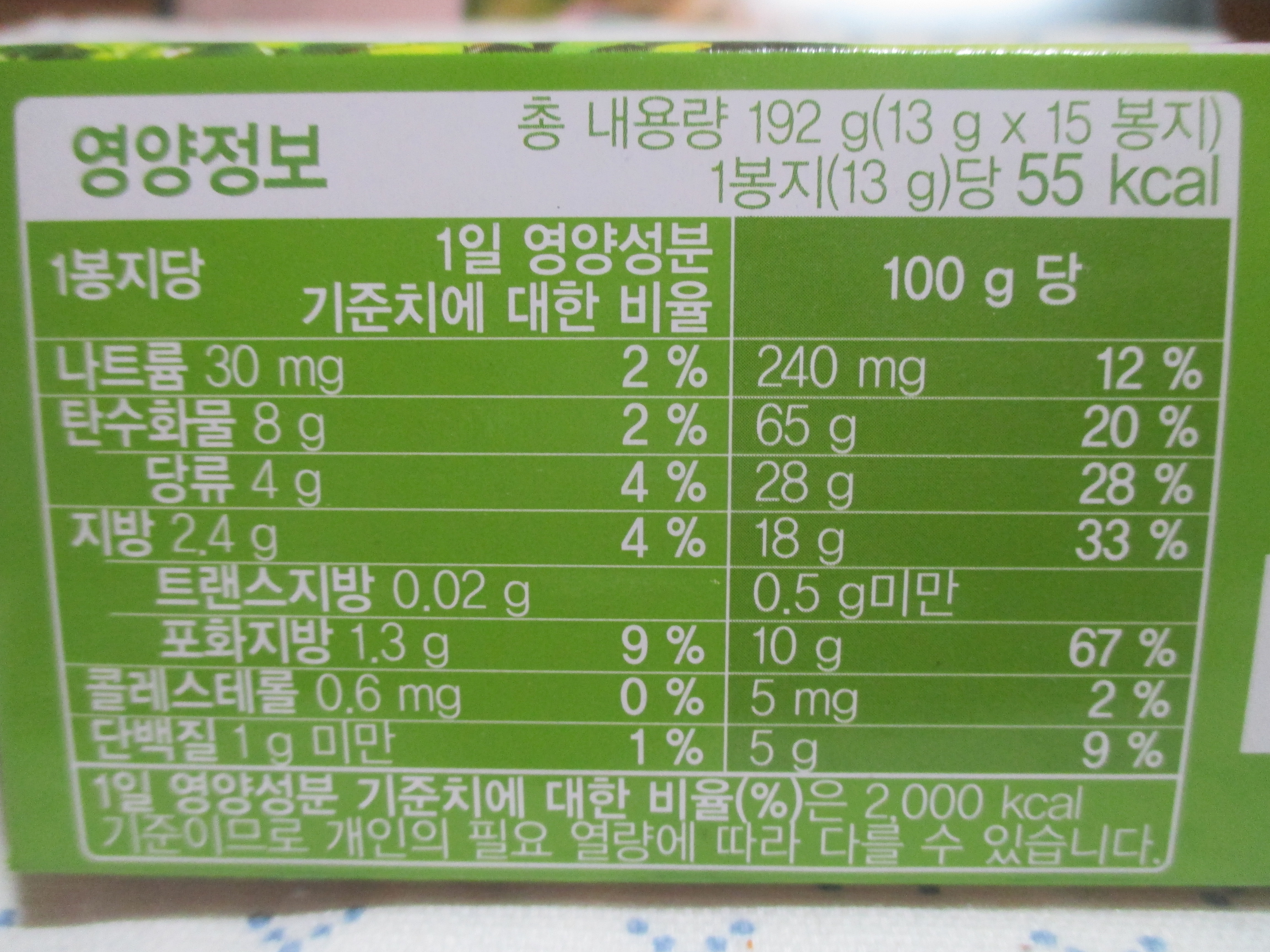 개별 포장지도 연두연두하니 싱그러운 느낌일 줄 알았는데, 겉 포장지와 너무 이질적이라 보자마자 헉 소리가 절로 나왔어요. 이 촌스러움 어쩔~~^^;