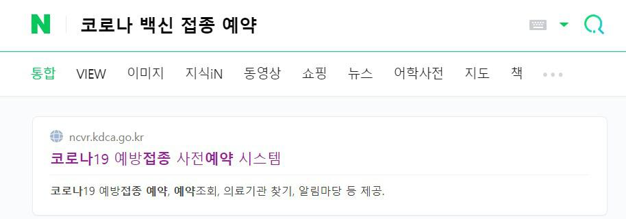 다음 또는 네이버 검색창에 "코로나 백신 접종 예약'이라고 입력하시면, 코로나 백신 접종 예약 홈페이지 바로가기가 첫 번째로 뜹니다. 클릭하시고 첫 번째 페이지에서부터 바로 예약을 진행합니다.