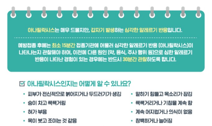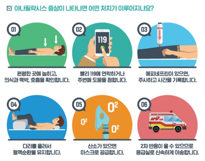만약 접종기간을 나와 아나팔락시스 증상이 나타난다면 아래와 같이 처치하시기 바랍니다.