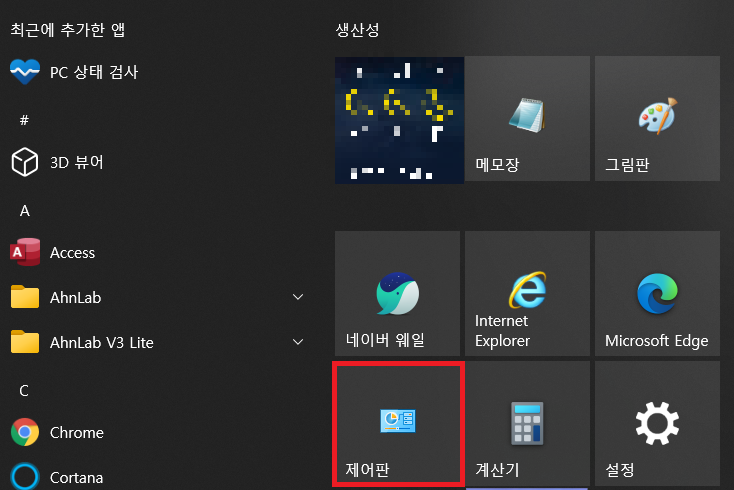 1. 컴퓨터에서 제어판을 열어주세요.