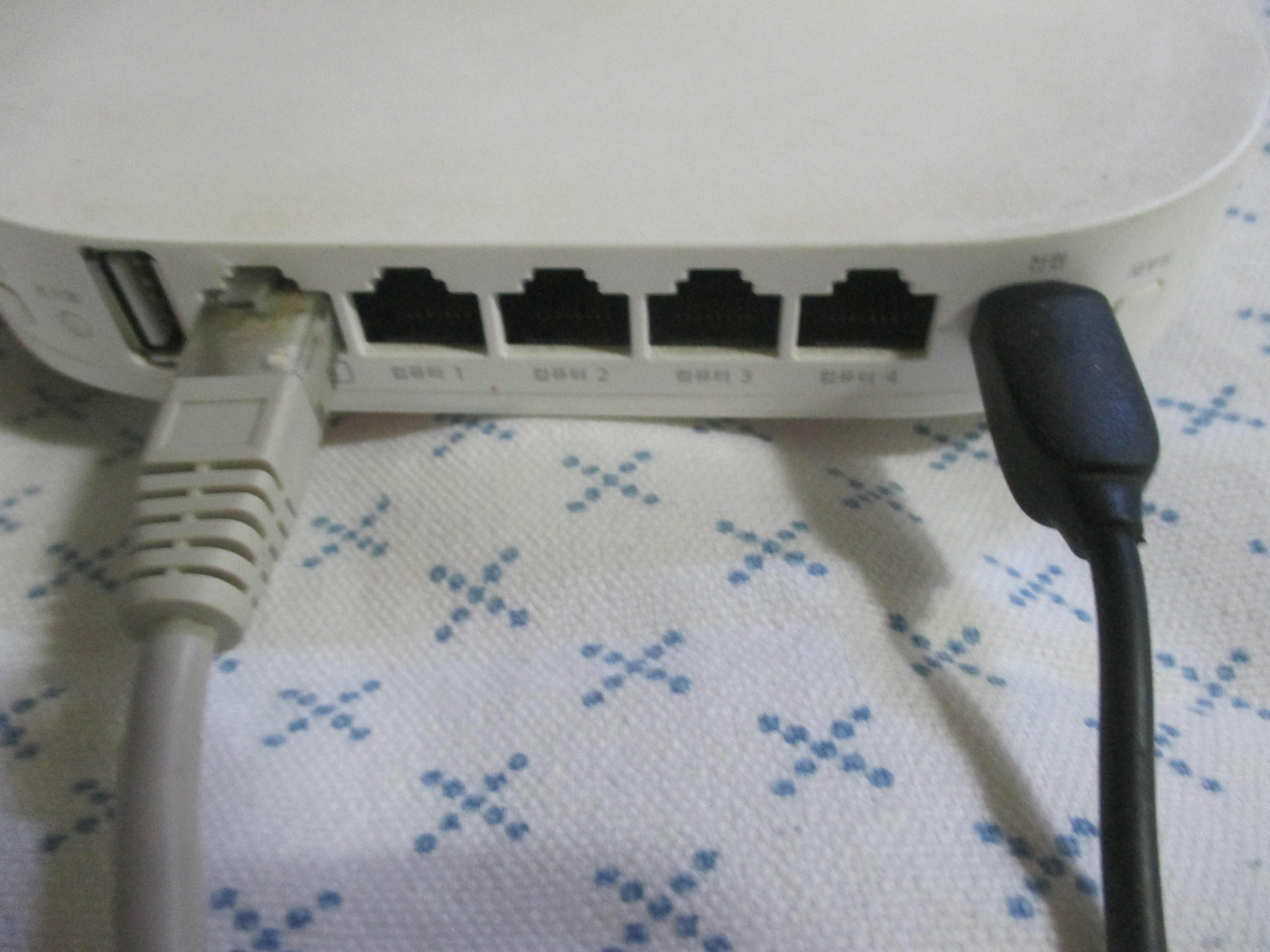 1. 와이파이 공유기를 찾아 뒷면의 검정색 전원 코드를 뺐다가 3초 후에 제자리에 다시 꽂아주세요.