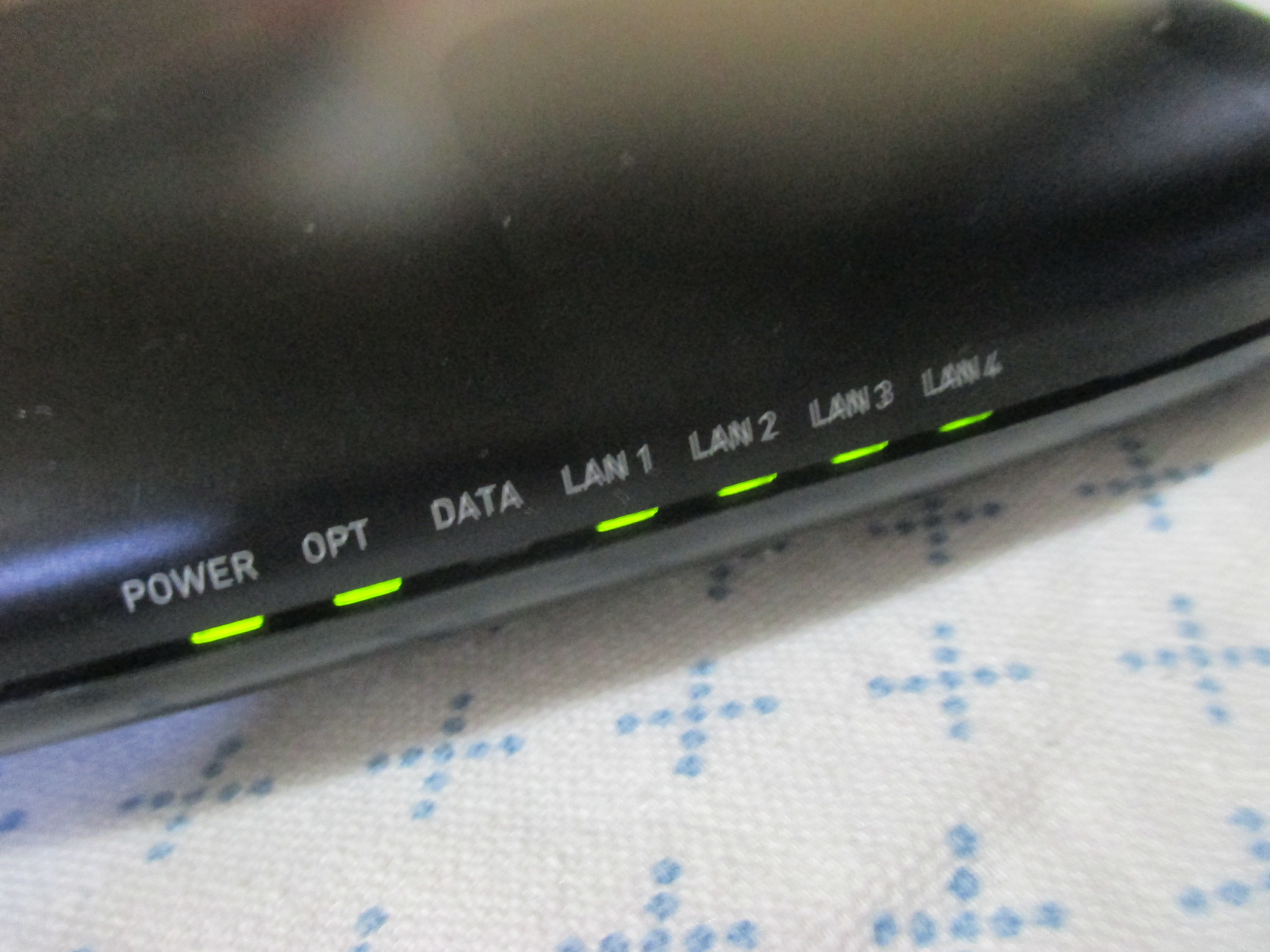 모뎀 앞을 보시면 LED 불빛이 여러 개 있을 텐데, 이중 하나라도 빨간불이 들어온다면 바로 100번으로 전화하시고, 모두 정상적인 초록불이 들어온다면 좀 더 체크를 해봅니다.