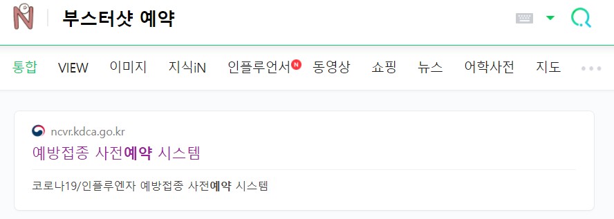 부스터샷 예약을 하시려면 네이버 또는 다음 검색창에서 "부스터샷 예약"을 입력합니다