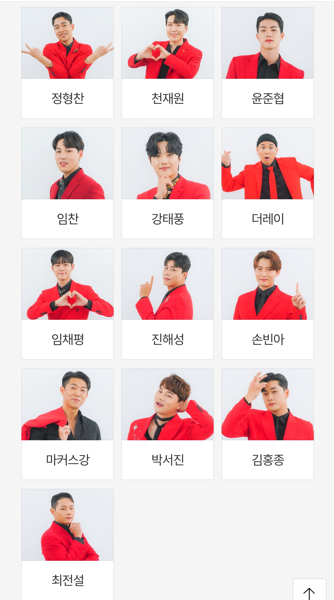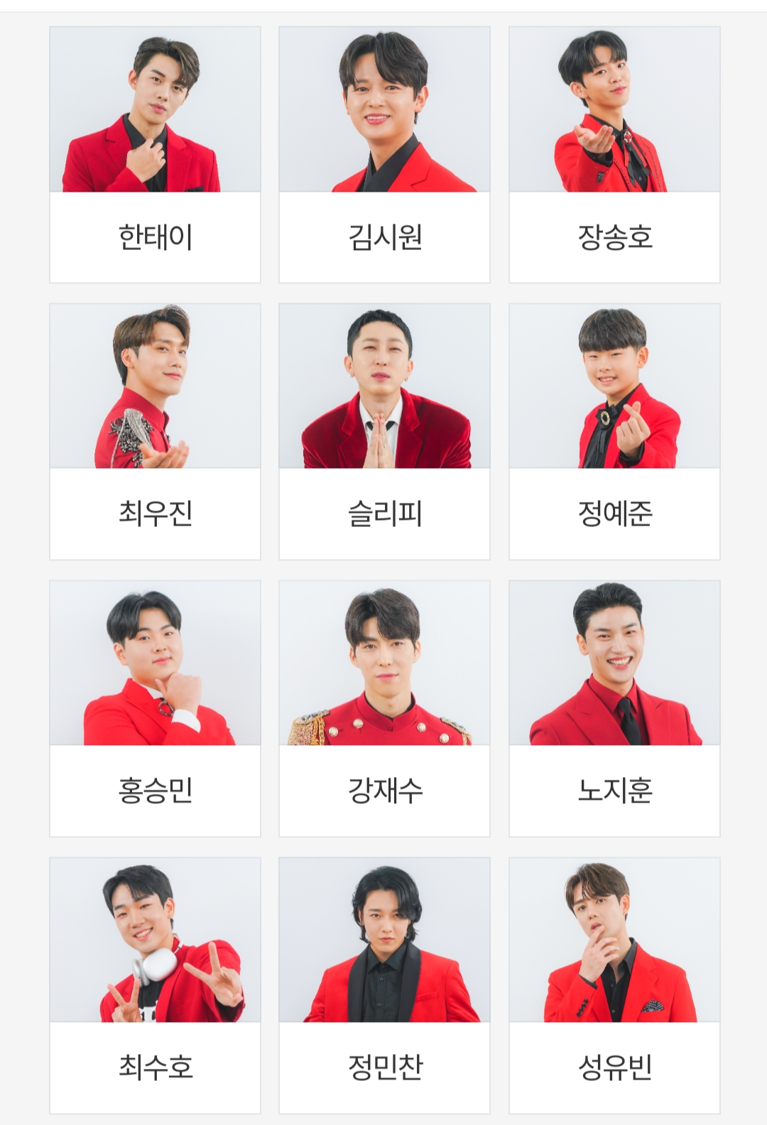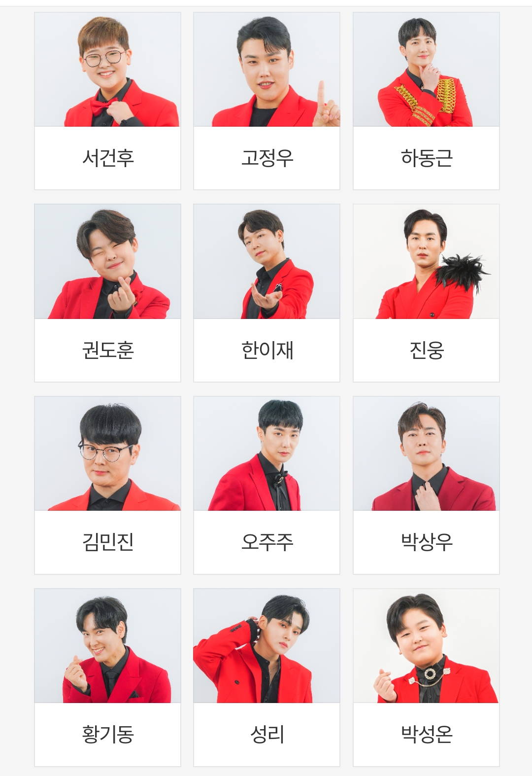 독종부 정형찬, 천재원, 대학부 윤준협, 임찬, 대학부 강태풍, 더레이, 대학부 임채평, 우승부 진해성, 현역부A 손빈아, 마커스강, 현역부A 박서진, 김홍종, 최전설