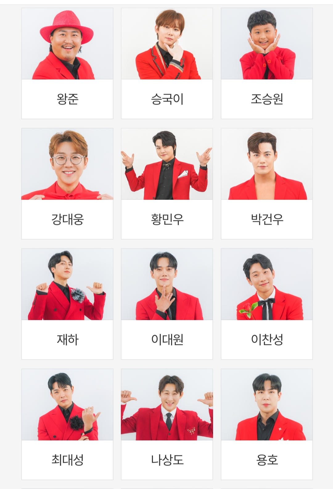 나이야가라부 왕준, 나이야가라부 승국이, 반장부 조승원, 현역부A 강대웅, 샛별부 황민우, 아이돌부 박건우, 우승부 재하, 이대원(미스터트롯1 참가자), 독종부 이찬성(미스터트롯1 참가자), 최대성(미스터트롯1 참가자), 우승부 나상도, 독종부 용호