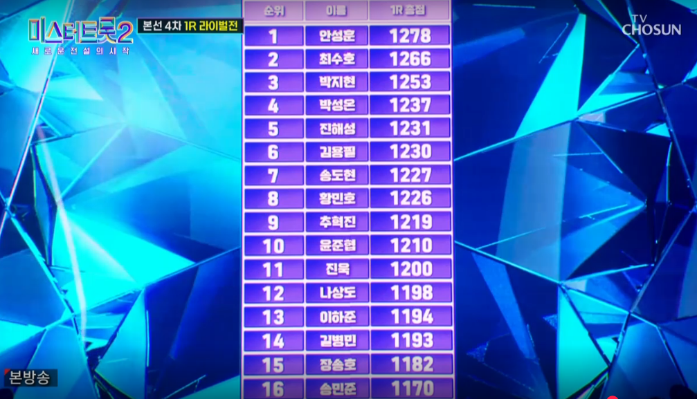 미스터트롯2 본선 4차 진출자 16인 & 본선 3차 최종 결과