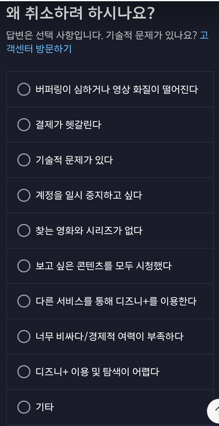 4. 멤버십 취소를 고려하도록 유도를 하는데, '디즈니+ 멤버십 취소' 버튼을 클릭합니다.