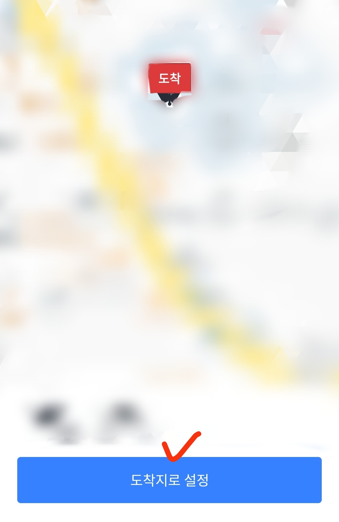 5. 지도 상의 도착지를 확인한 다음 맞으면 하단의 '도착지로 설정'을 클릭합니다. 도착 아이콘을 이동시키면 보다 세밀하게 도착지점을 정할 수도 있어요.