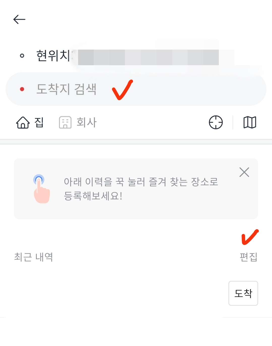 * 검색했던 도착지 목록을 삭제하시려면 최근 내역에서 '편집'으로 들어가시면 됩니다.(선택 삭제 가능)