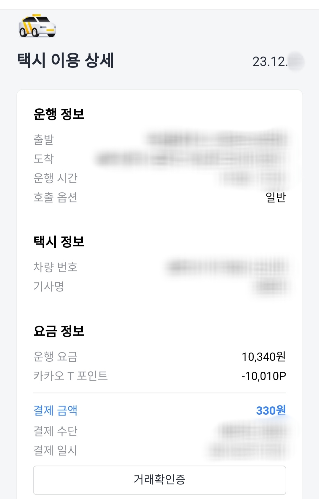 행여라도 포인트가 아닌 카드로 결제가 된 건 아닐까 걱정이 돼서 택시에 올라 포인트가 차감됐는지 확인해 보니까 안 됐더라고요. 카드 사용 내역 문자도 오지 않아서 기사님께 여쭤보니 알려주시더라고요.