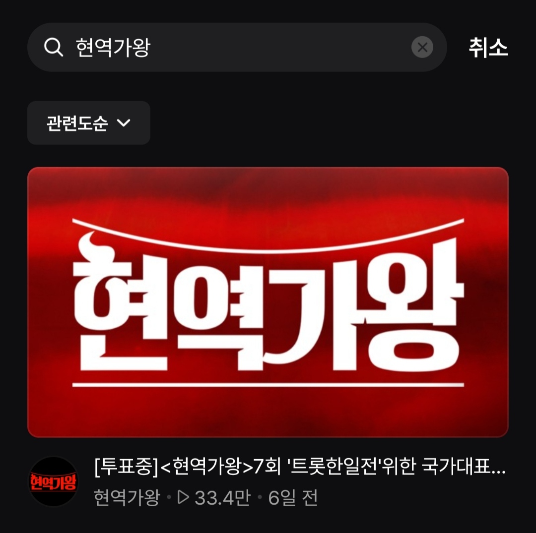 3. 또는 앱 하단 우측에서 돋보기 모양의 검색창을 열고 '현역가왕'을 입력하셔도 현역가왕 투표 페이지로 이동하실 수 있습니다.