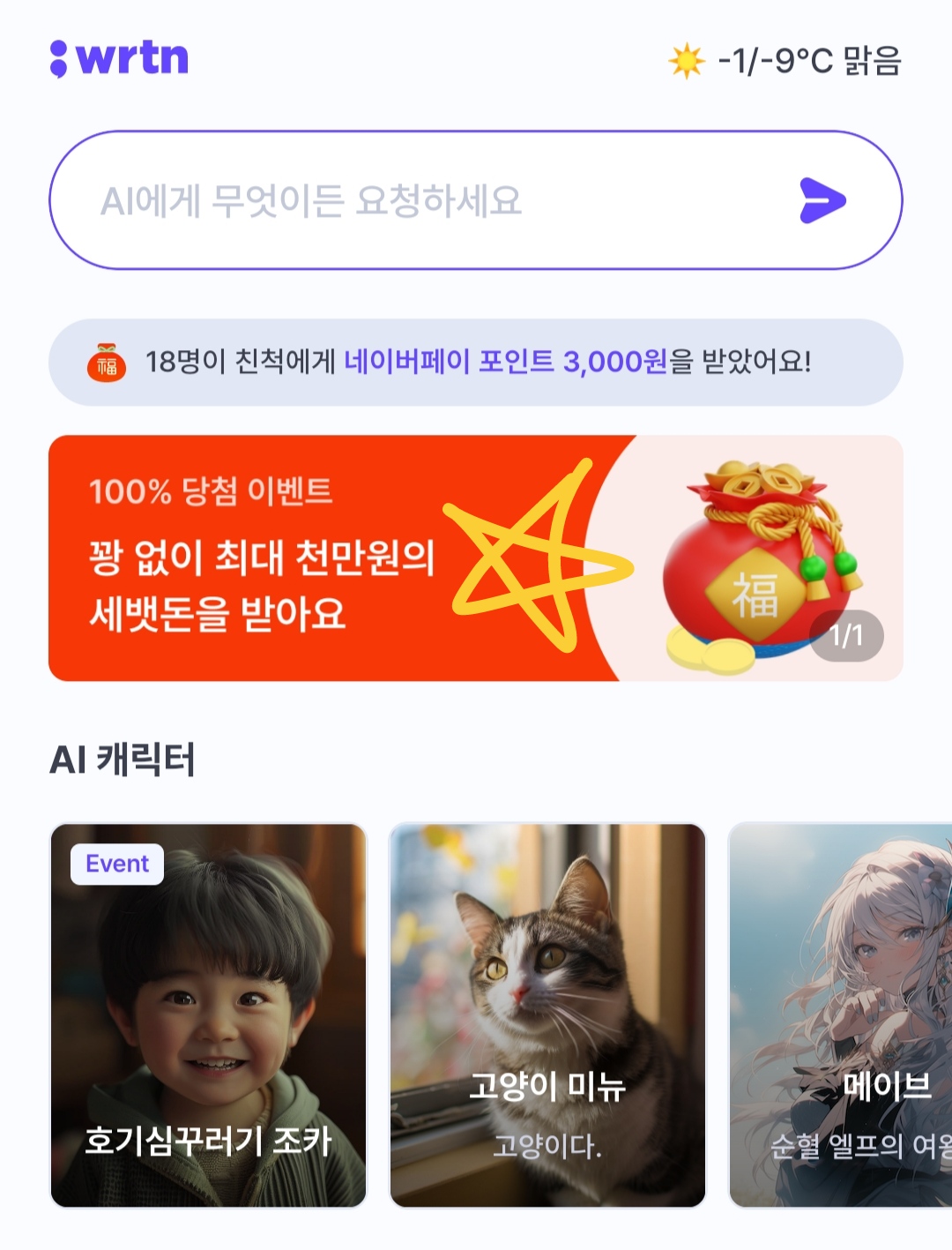첫 번째는 뤼튼 앱에서 진행중인 이벤트예요.