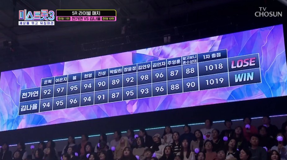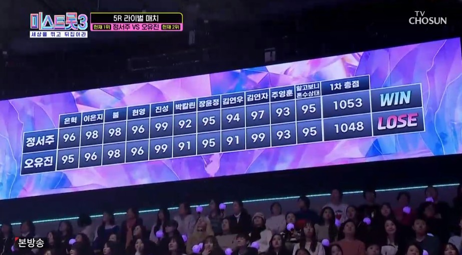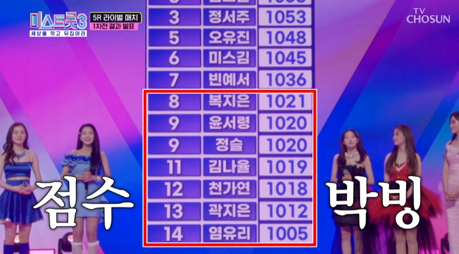 그럼 미스트롯3 TOP10 결정전 1라운드의 결과를 알아볼게요.