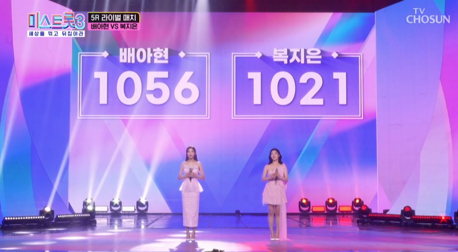 두 사람의 무대를 보며 어렵다고 했던 장윤정 마스터의 점수는 배아현에게 95점, 복지은에게 92점을 주었네요.