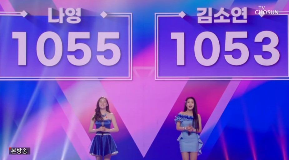 나영 1055점, 김소연 1053점으로 두 사람 모두 고득점을 받았으며, 두 사람의 차이는 단 2점이었어요.