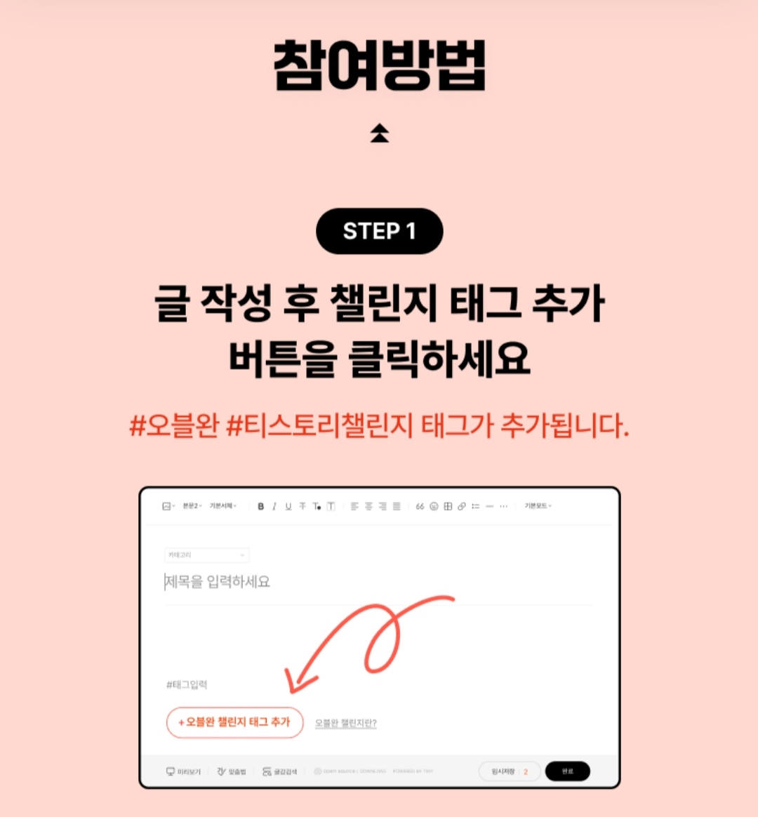 포스팅 작성 후 아래 태그에서 '+오블완 챌린지 태그 추가'를 누르면 자동으로 '#오블완 #티스토리챌린지' 태그가 추가돼요.(**태그 필수**)