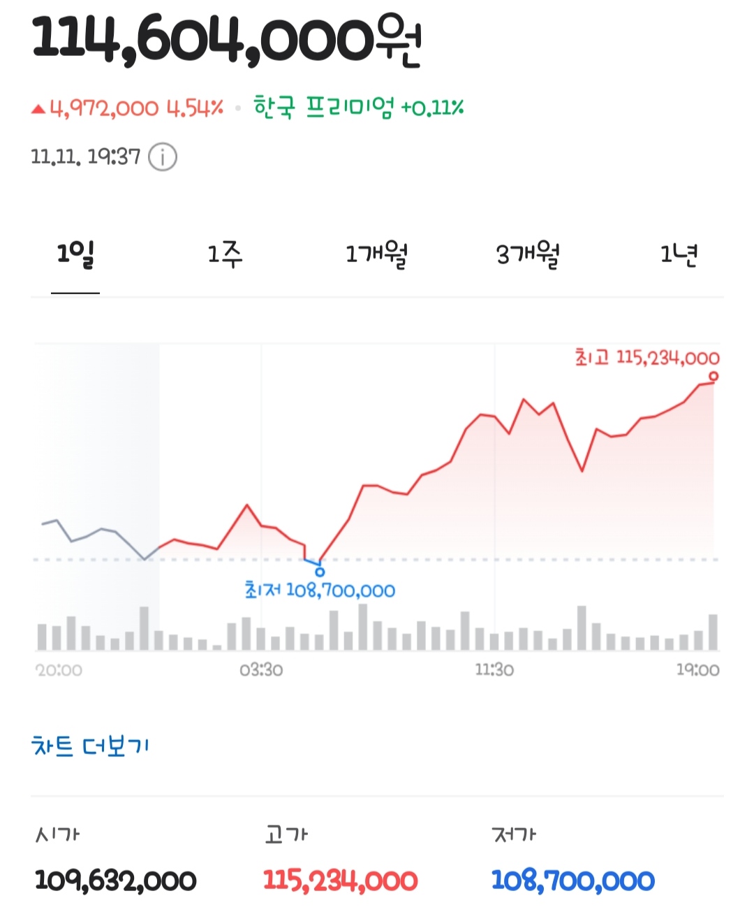 그런데 오늘 최고가가 무려 115,234,000원이었네요.ㅋㅋㅋ ㅠㅠ