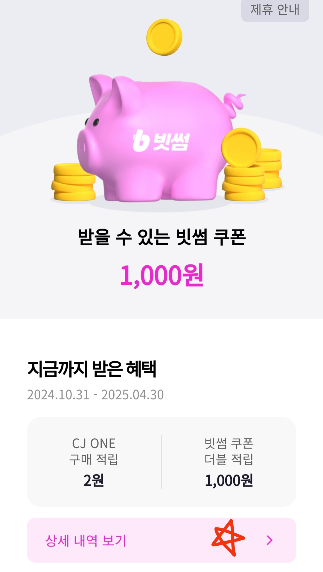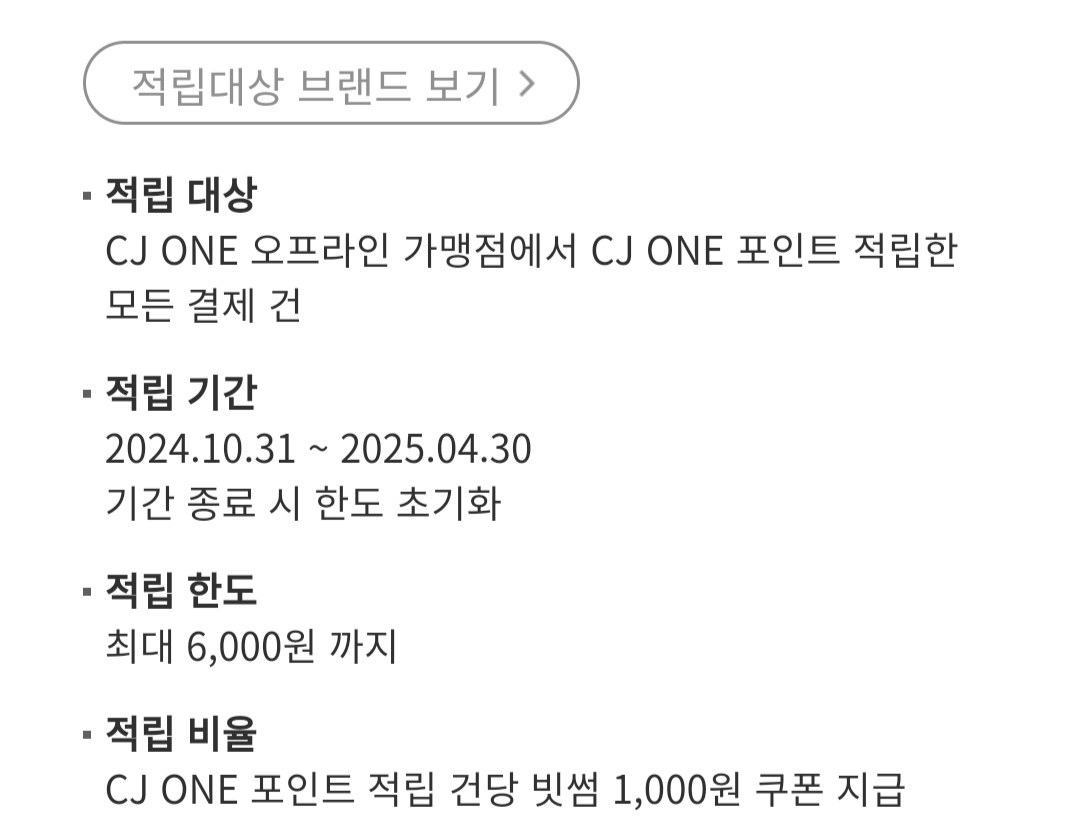 적립 기간은 2024년 10월 31일부터 25년 4월 30일까지로 넉넉해요.