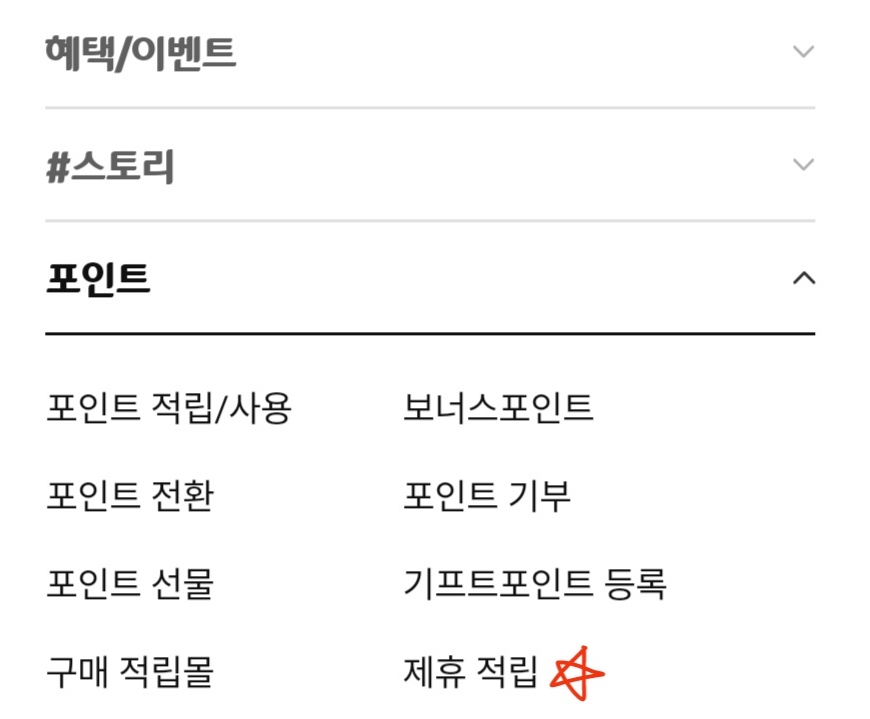 1. CJ ONE 앱 첫 화면에서 우측 상단에 있는 삼선 모양 아이콘을 클릭, '포인트' 항목을 열어 '제휴적립'으로 들어갑니다.