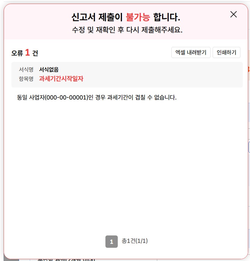 * 8번에서 말씀드렸던 오류입니다. 940909 사업소득과 원천징수세액 둘 다 진행했었는데, 같은 사업자라서 위와 같은 오류가 발생했었습니다. 해결 방법은 8번 내용을 확인해주세요.